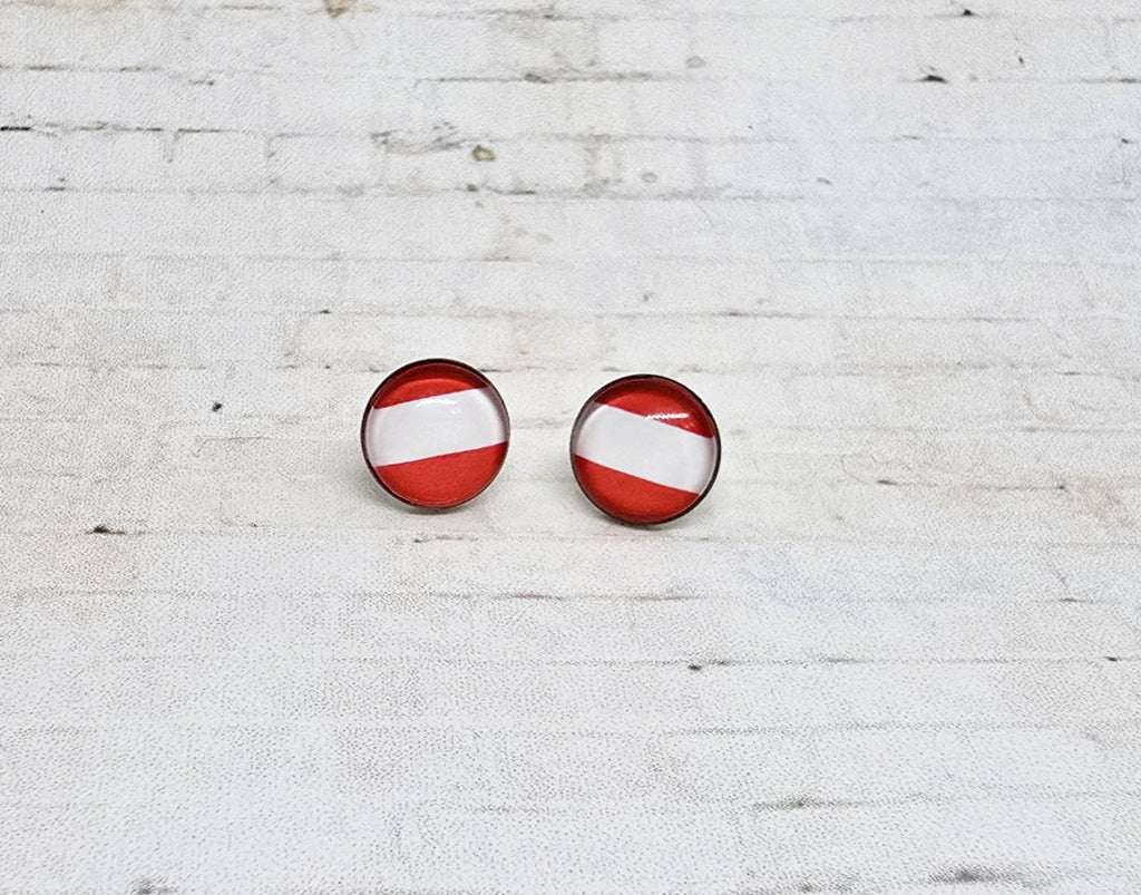 Austria Flag Earrings, 12MM, Austria Flag Stud Earrings, Austria Flag, Austrian Flag Earrings, Austria Flag, Austrian Earrings, World Cup