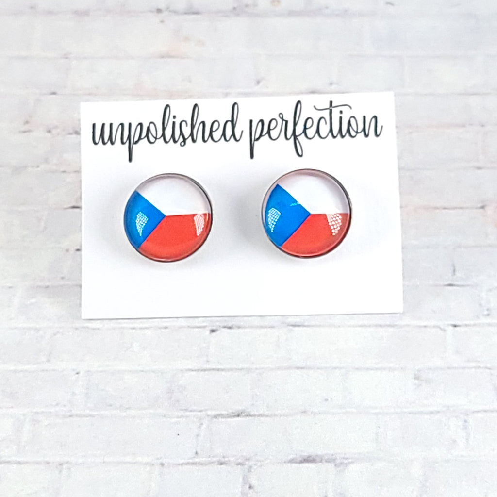 Czech Republic Flag Earrings | 12mm Studs | Country Flags