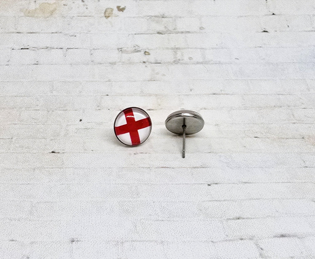 England Flag Earrings, 12MM, England Flag Stud Earrings, England Flag, English Flag Earrings, England Flag, English Earrings, World Cup