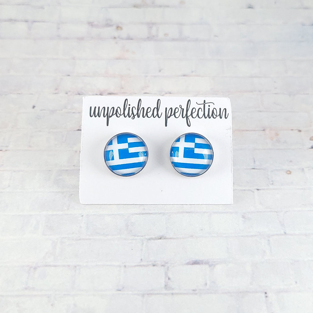 Greece Flag Earrings | 12mm Studs | Country Flags
