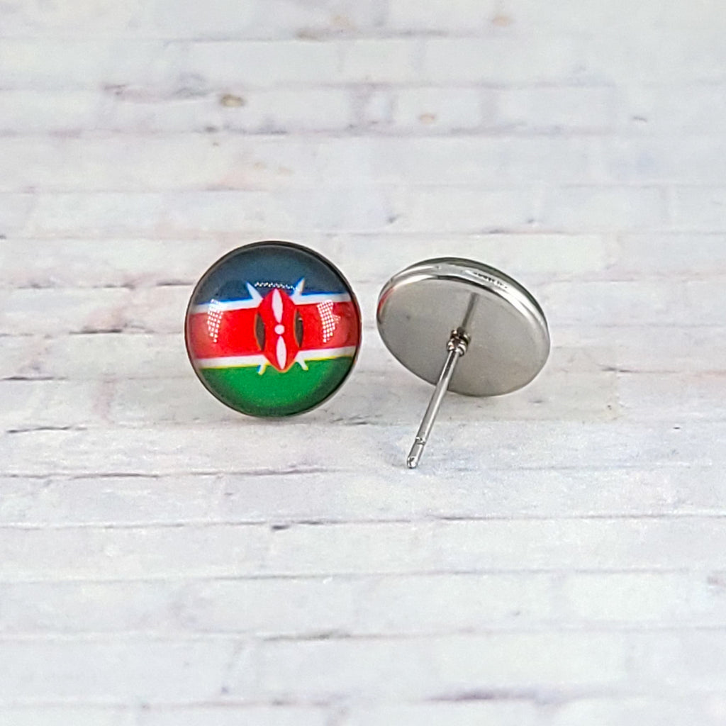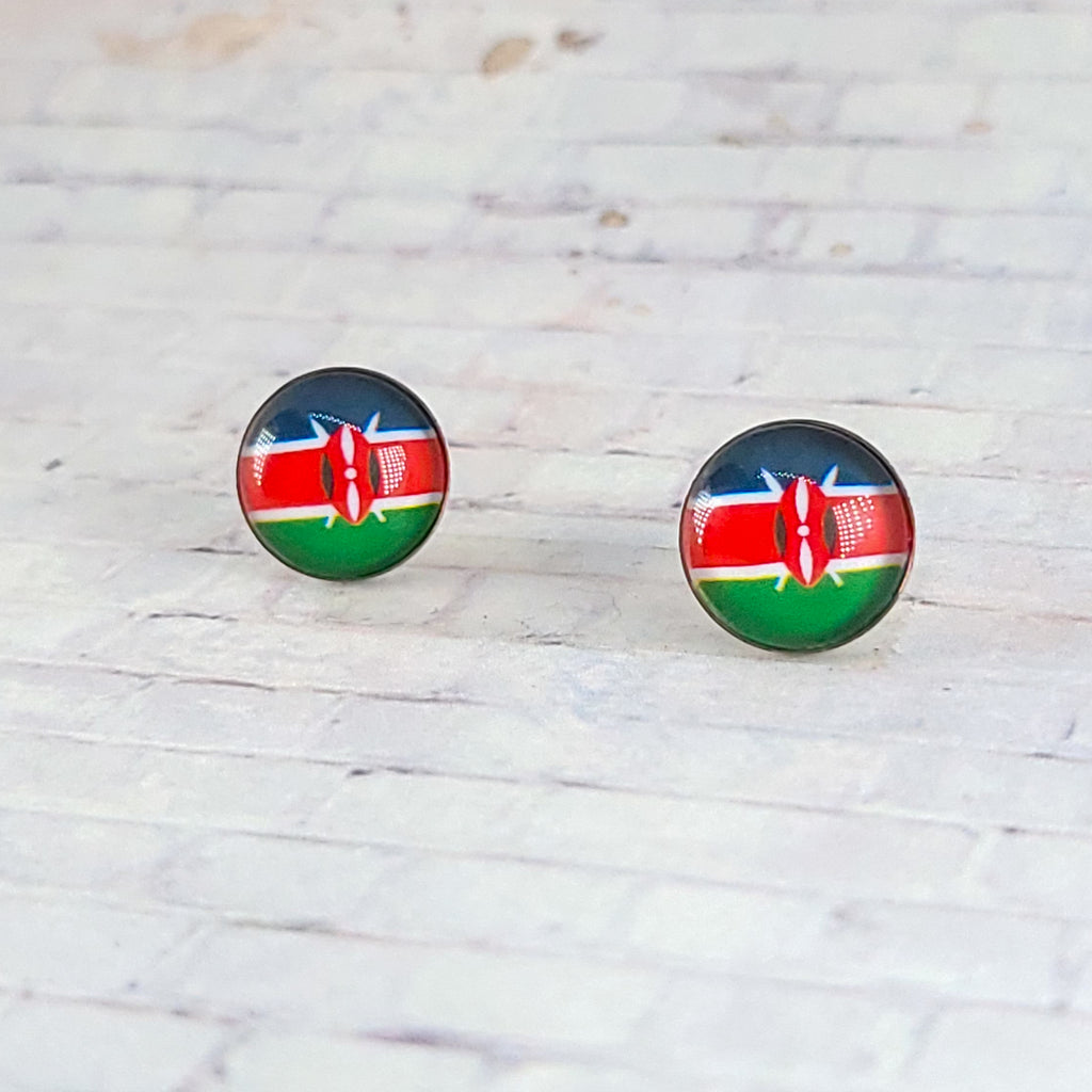 Kenya Flag Earrings | 12mm Studs | Country Flags