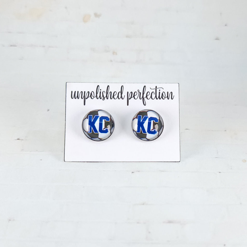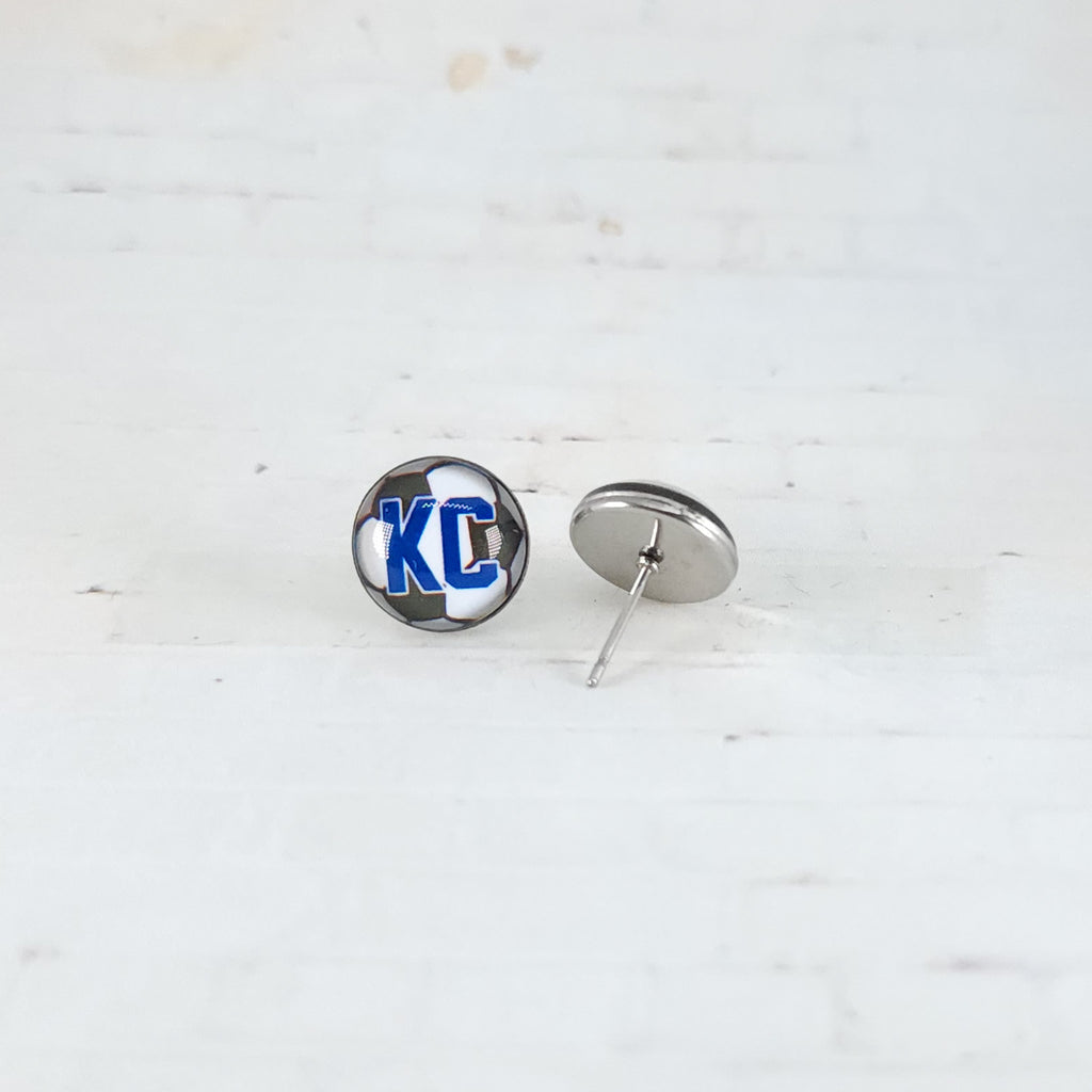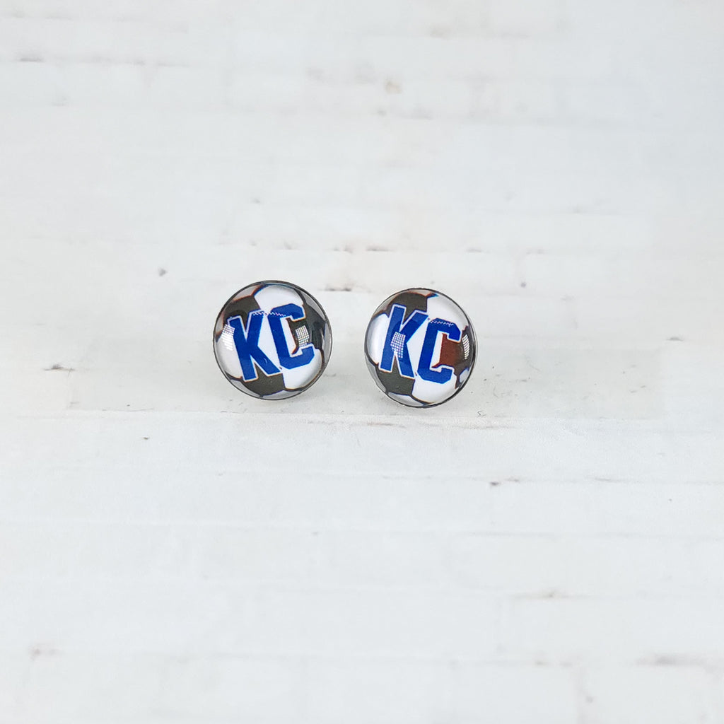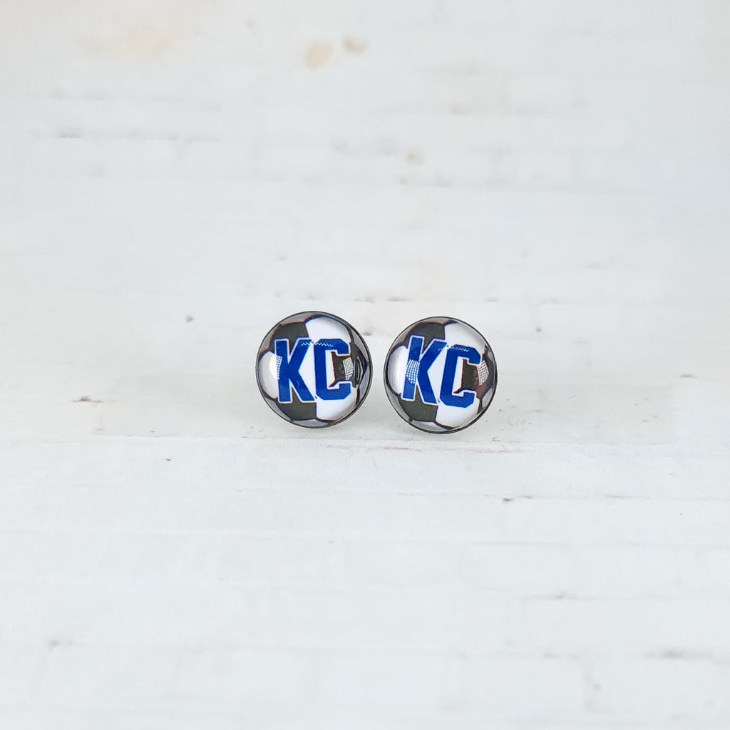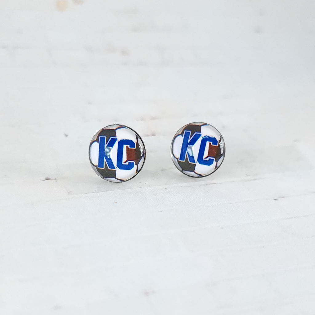 Sporting KC Soccer Earrings, 12MM, Soccer Print Stud Earrings, Soccer Studs, Soccer Stud Earrings, Sporting KC Studs, Kansas City Earrings