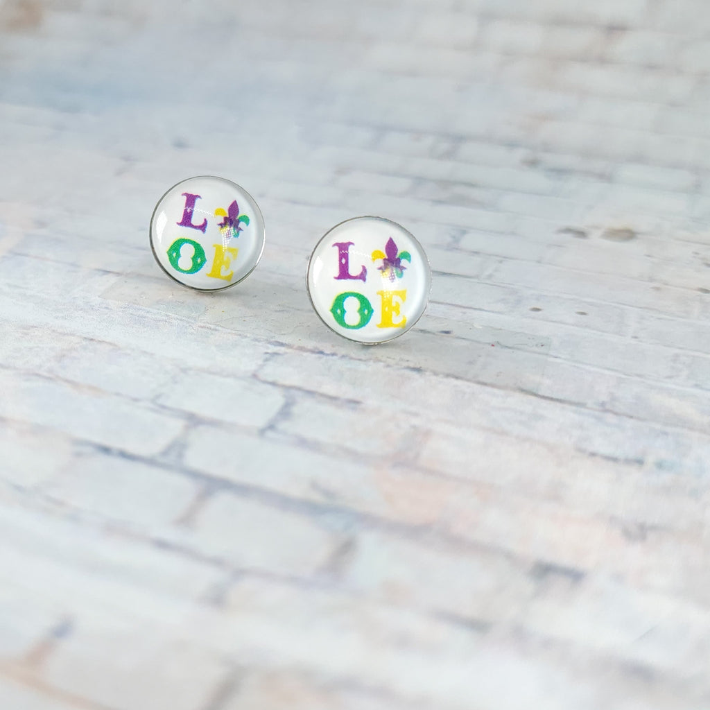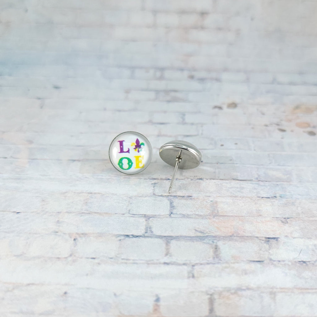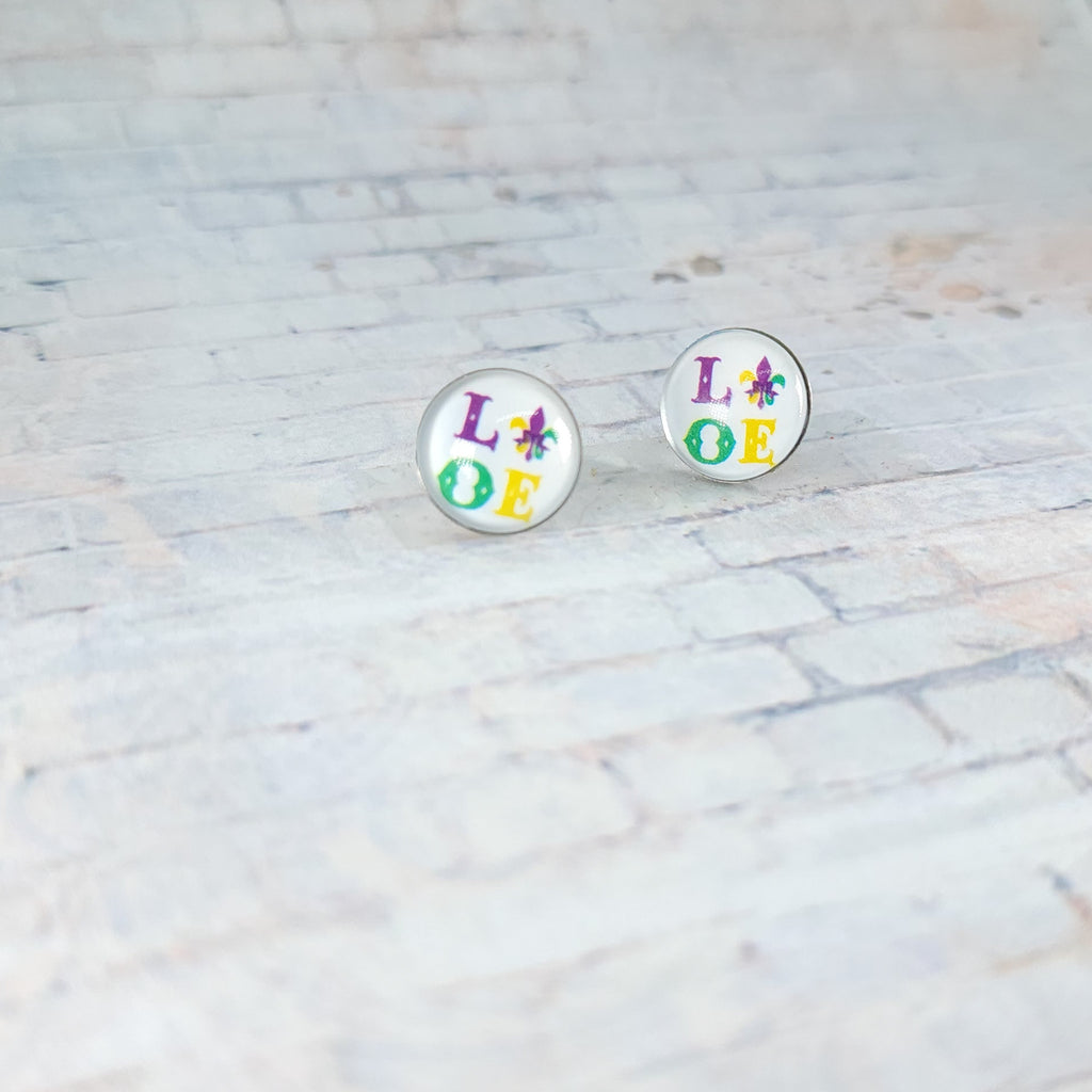 LOVE Earrings | 12mm Studs | Mardi Gras Stud Earrings