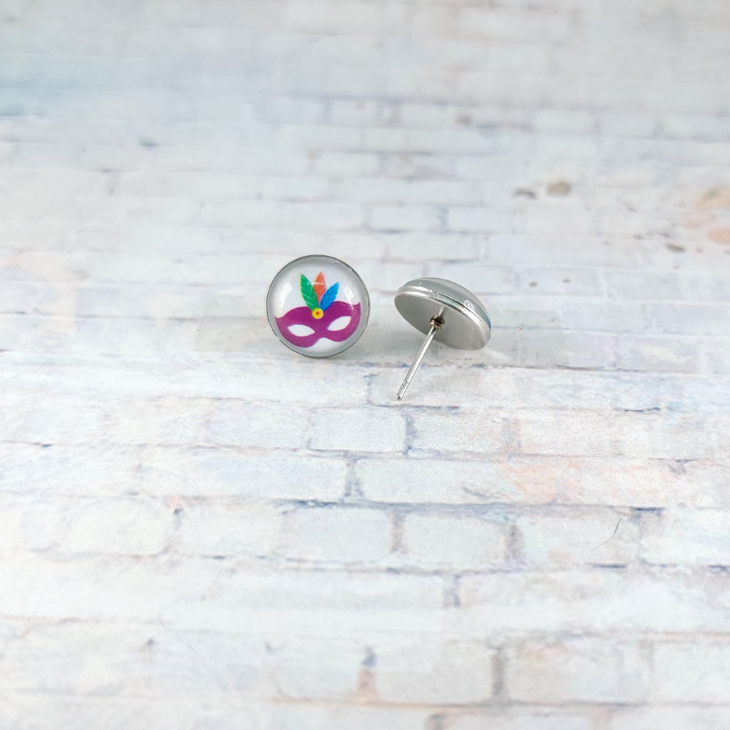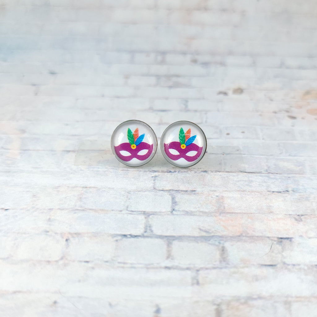 Mardi Gras Mask Earrings | 12mm Studs | Mardi Gras Stud Earrings