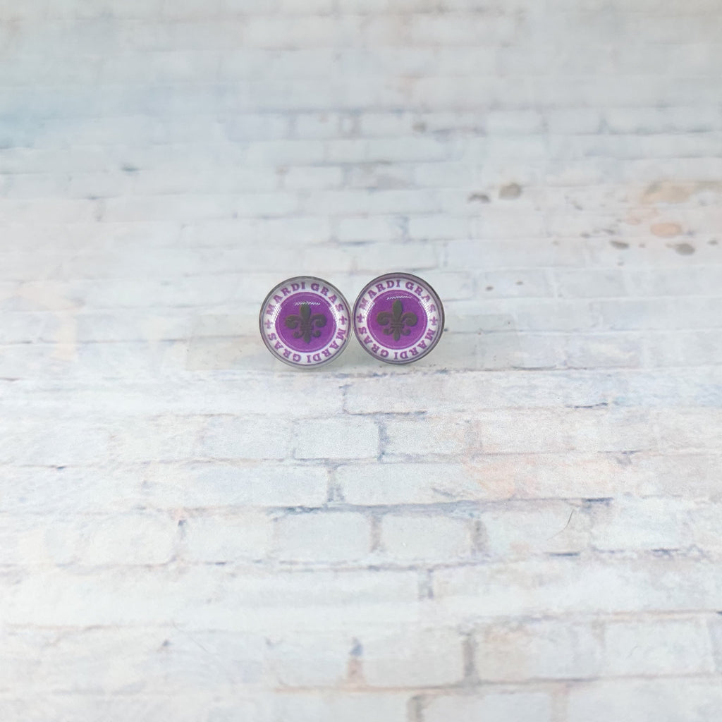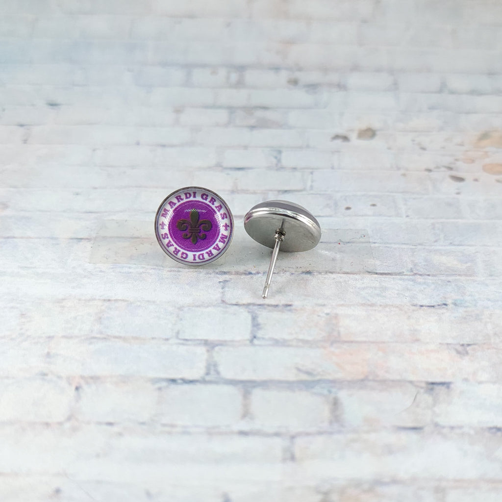 Purple Mardi Gras Earrings | 12mm Studs | Mardi Gras Stud Earrings