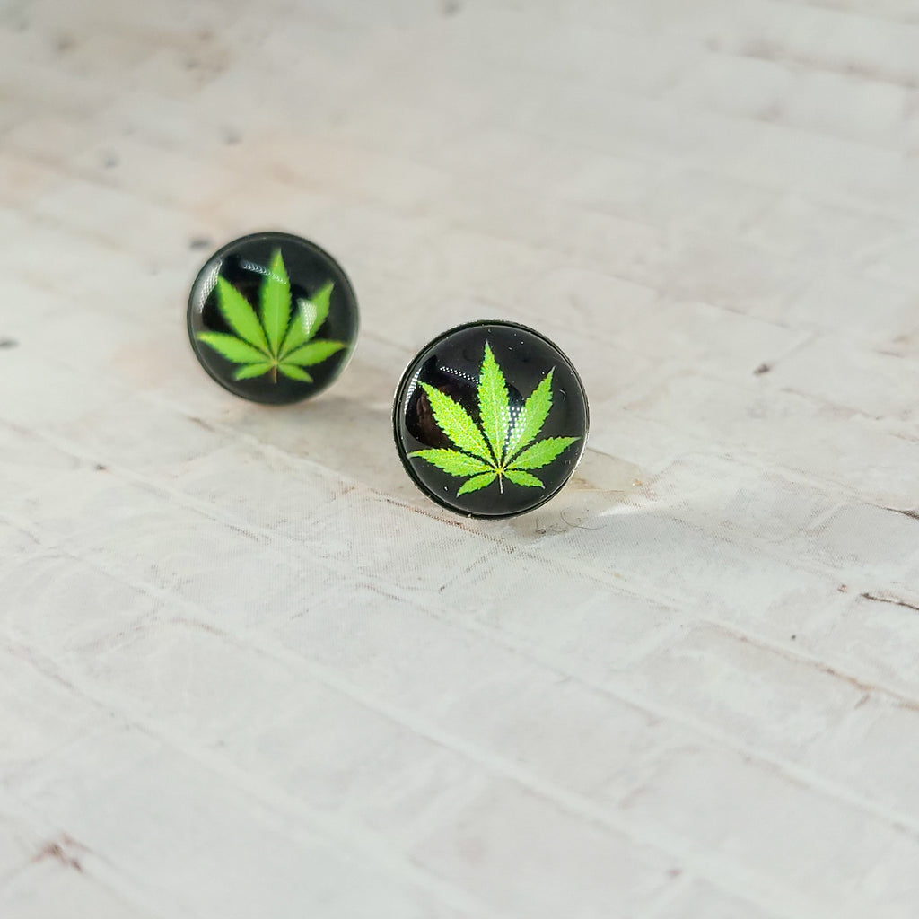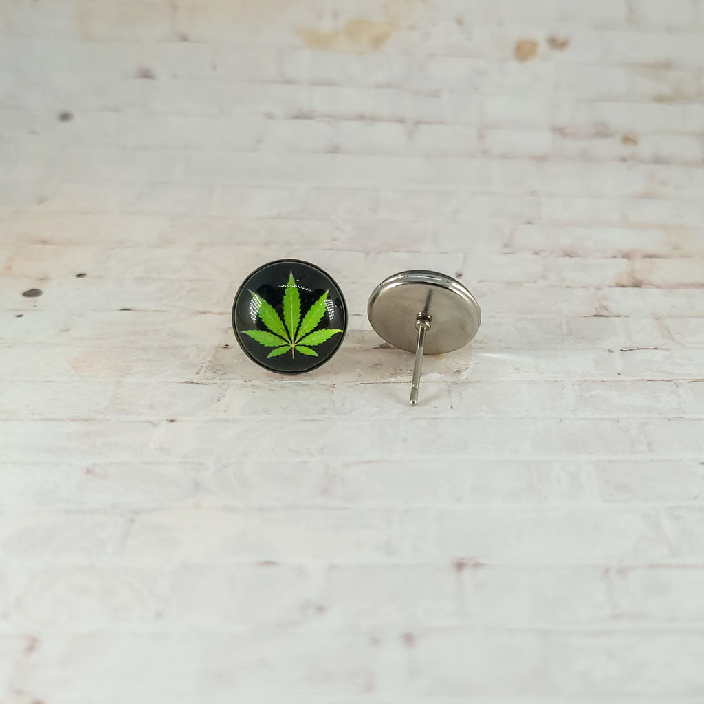 Marijuana Leaf Studs, 12MM Studs, Weed Earrings, Pot Leaf Earrings, Cannabis Earrings, 420 Earrings, Marijuana Earrings, Hemp Earrings