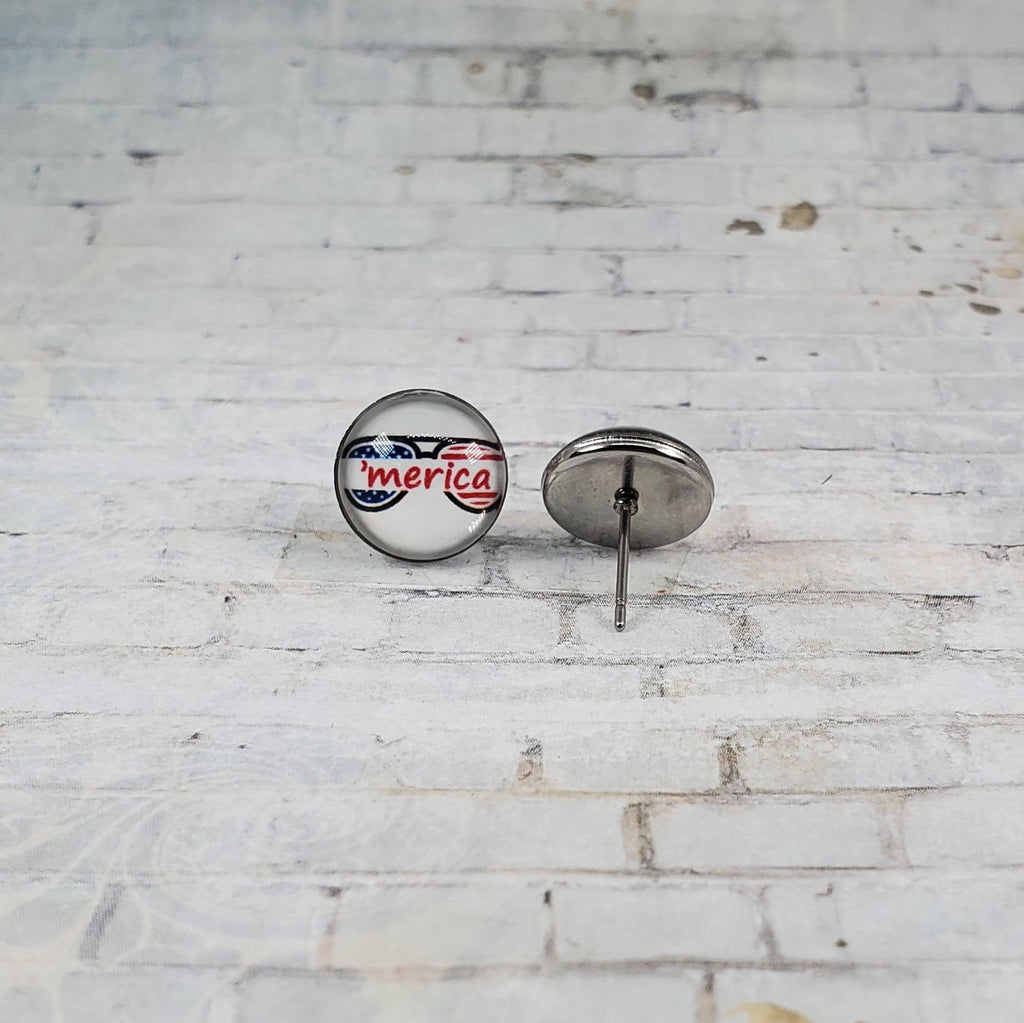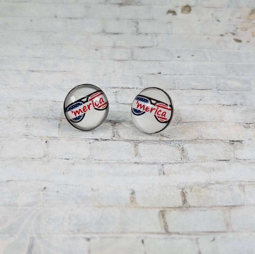 'Merica Sunglass Earrings | 12mm Studs | Patriotic Earrings