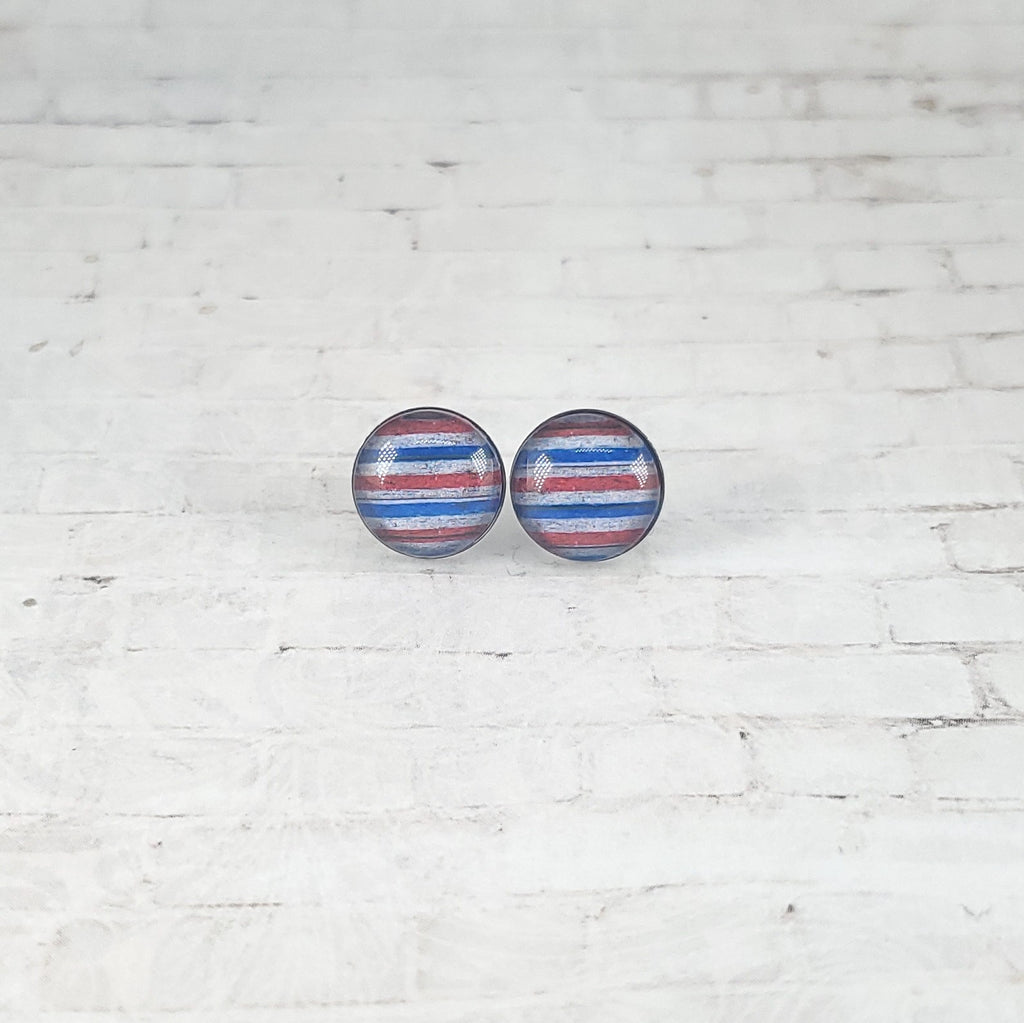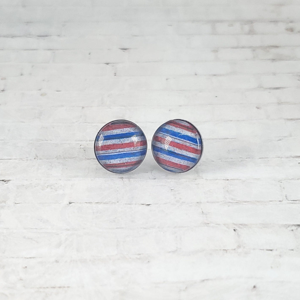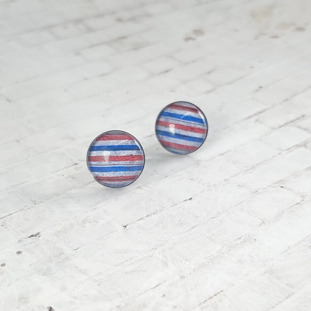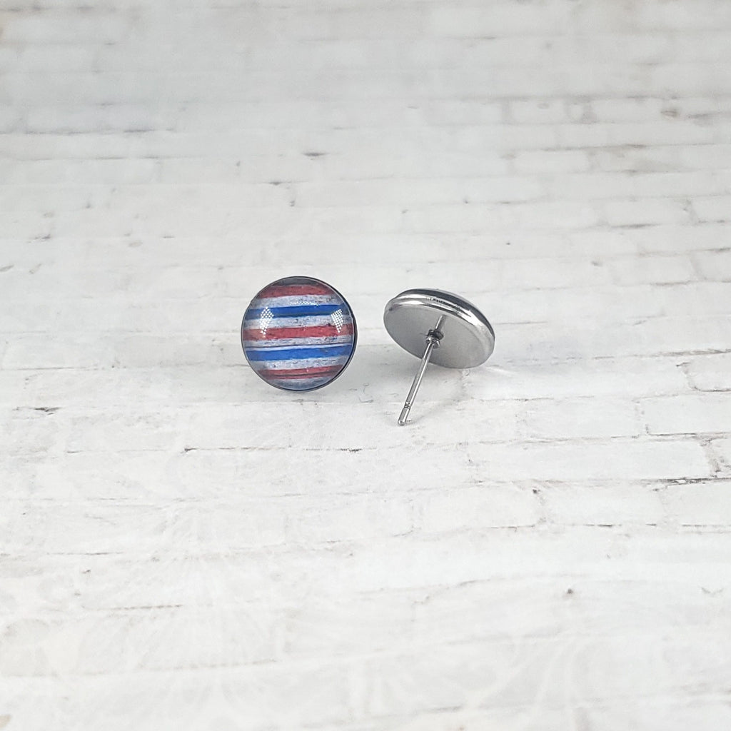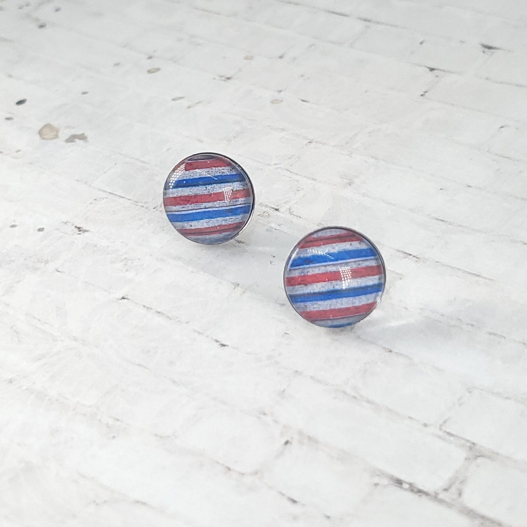 USA Vintage Stripe Earrings | 12mm Studs | Patriotic Earrings