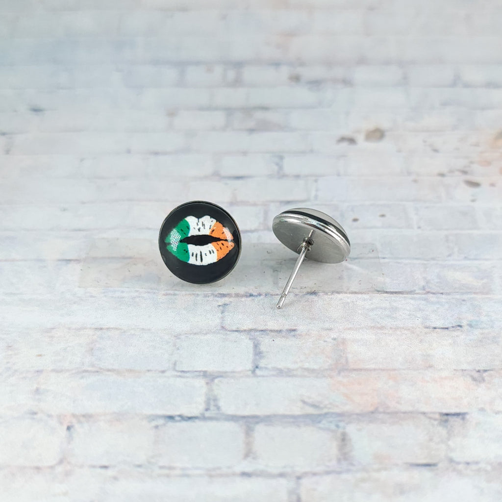 Irish Flag Lips Earrings | 12mm Studs | St. Patrick's Day Stud Earrings