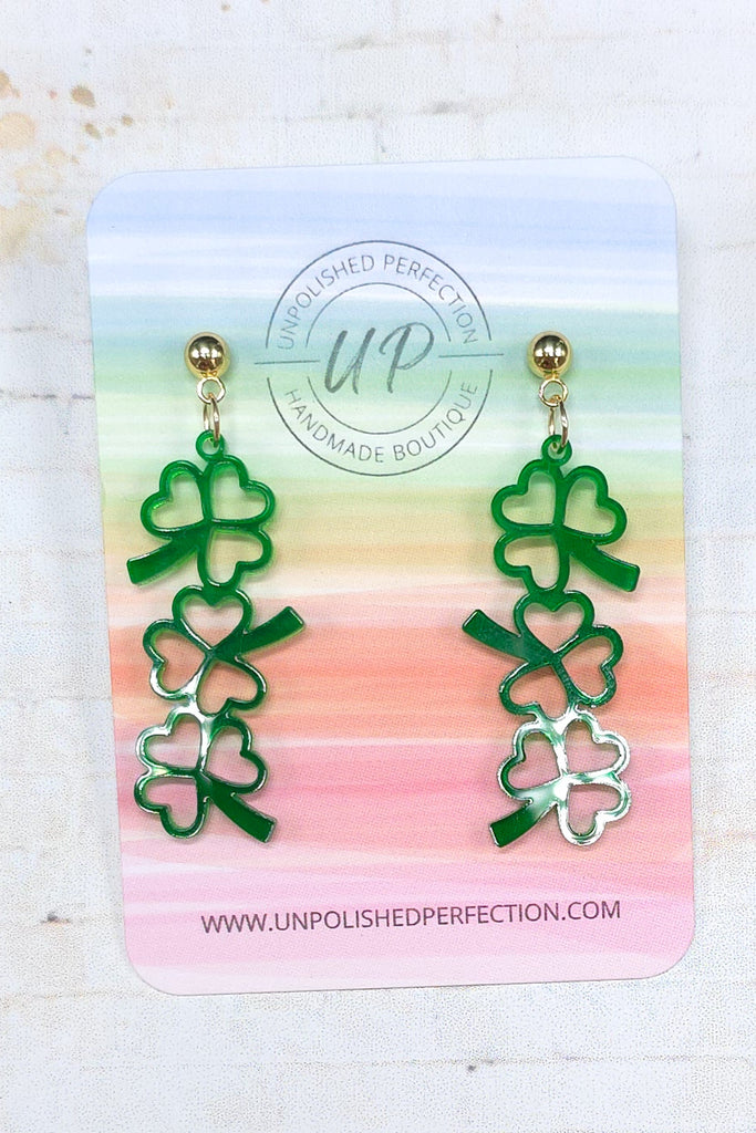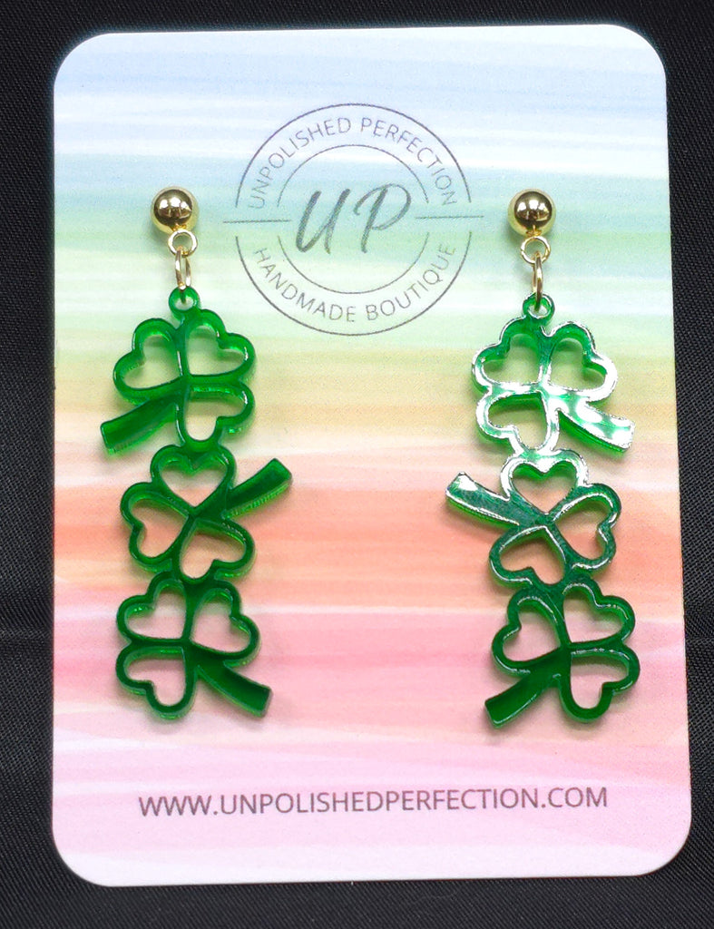 Shamrock Stack Earrings | St. Patrick's Day | Green Transparent Acrylic Earrings