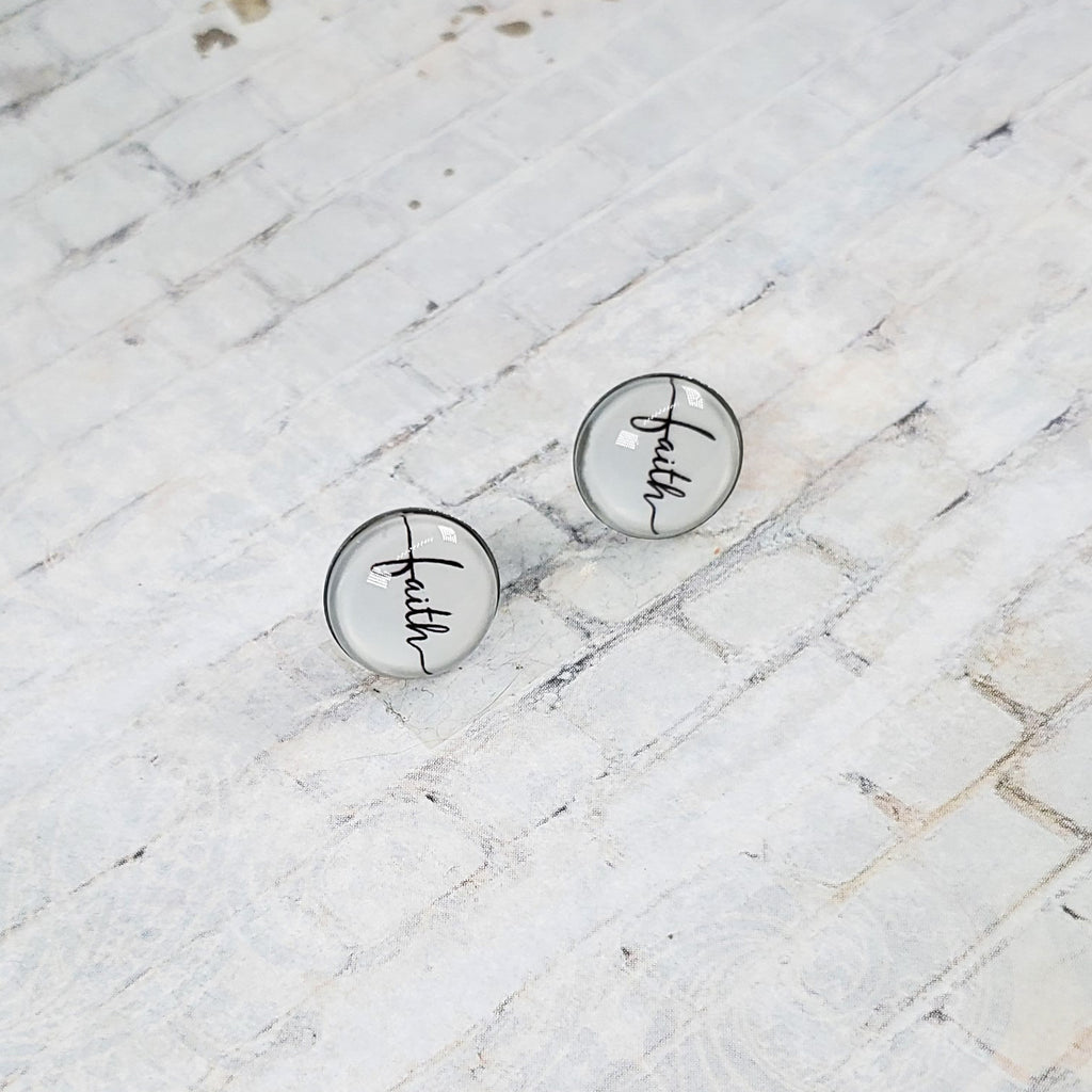 Faith Earrings, 12MM, Faith Studs, Statement Earrings, Christian Earrings, Word Earrings, Faith Stud Earrings, Inspirational Earrings, Faith