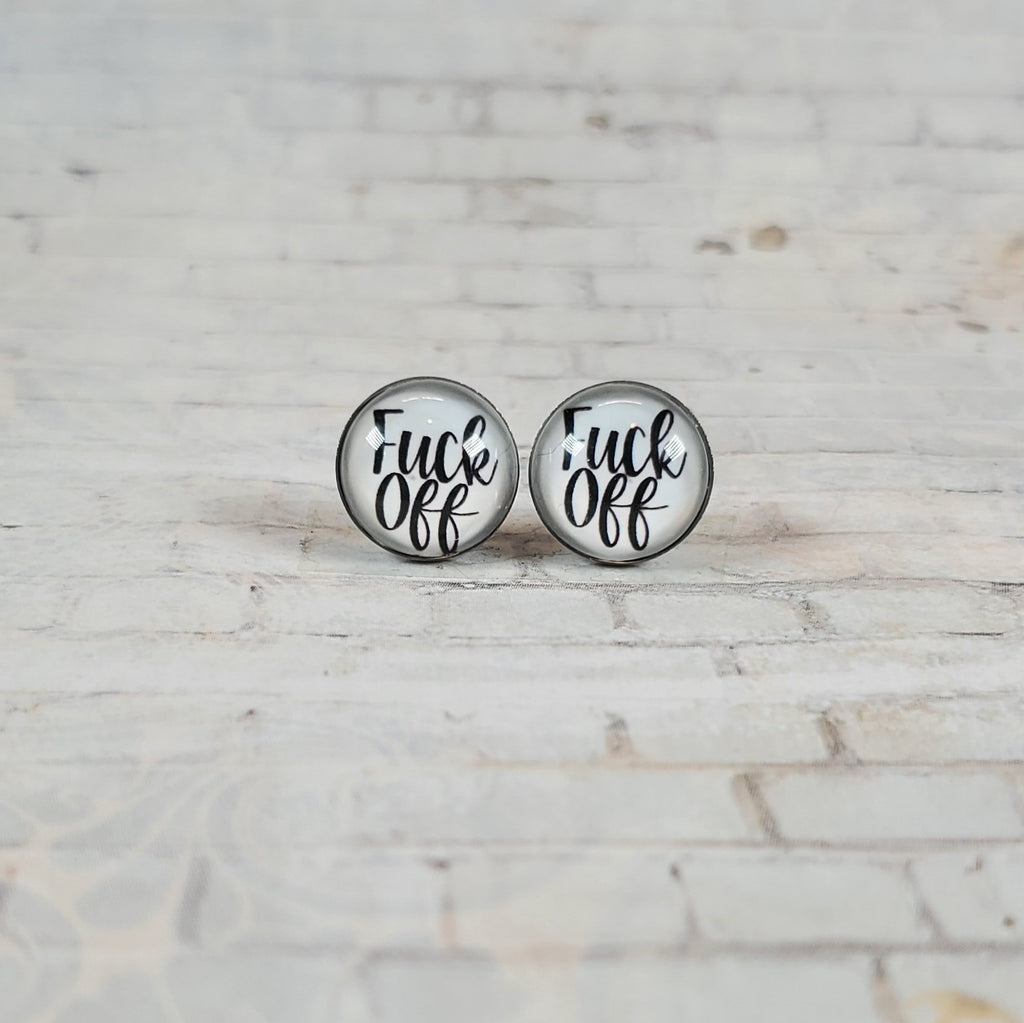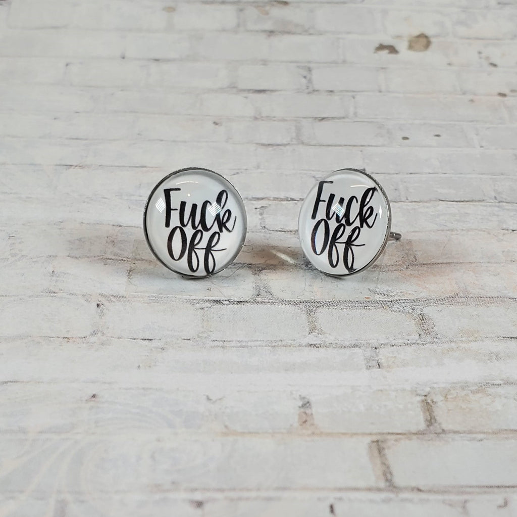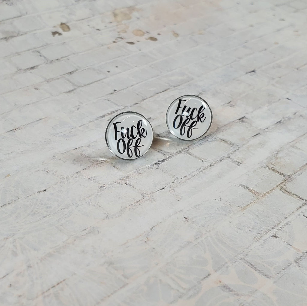 "Fuck Off" Earrings | 12mm Studs | Word Earrings