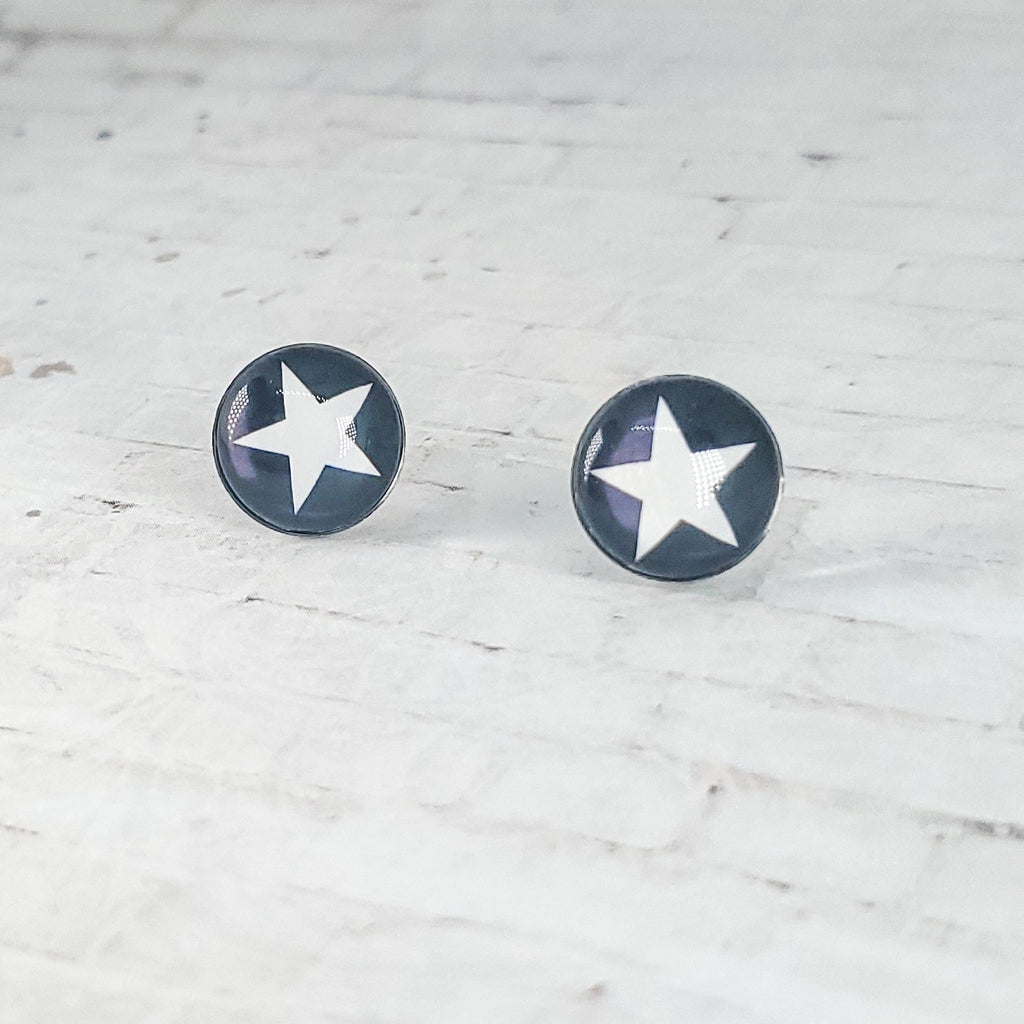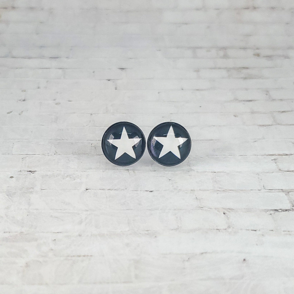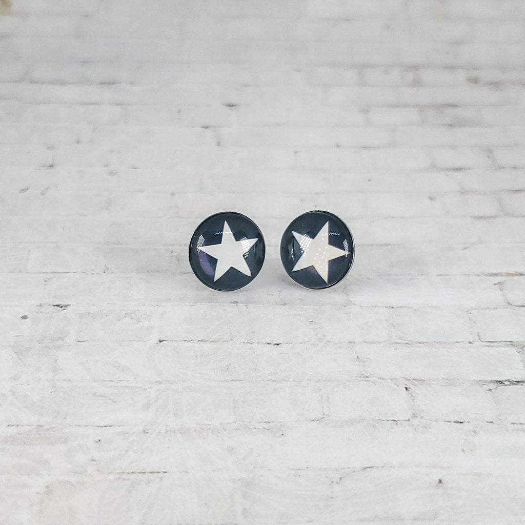 Star Earrings, 12MM, White Star Stud Earrings, Black & White Earrings, Star Jewelry, Star Studs, White Star Earrings, Cabochon Earrings