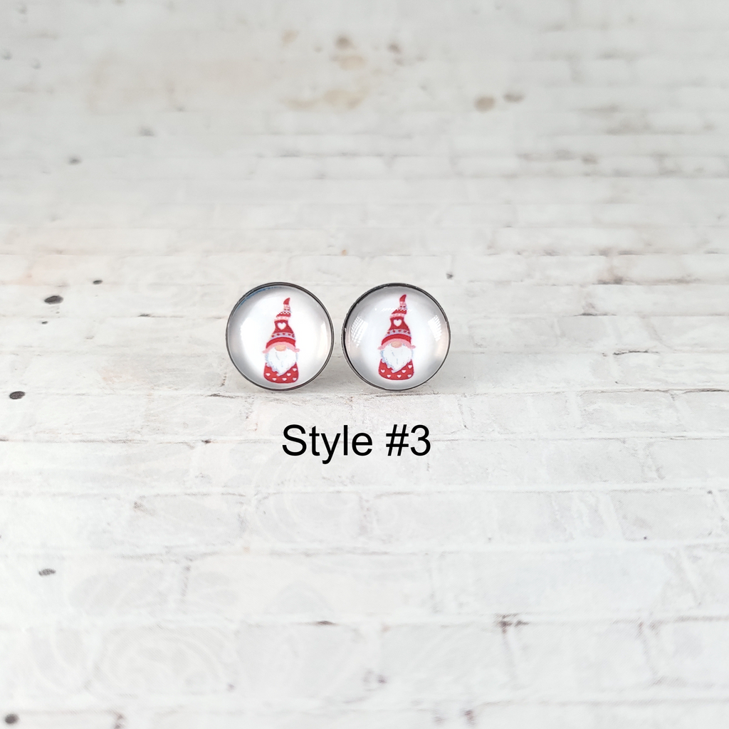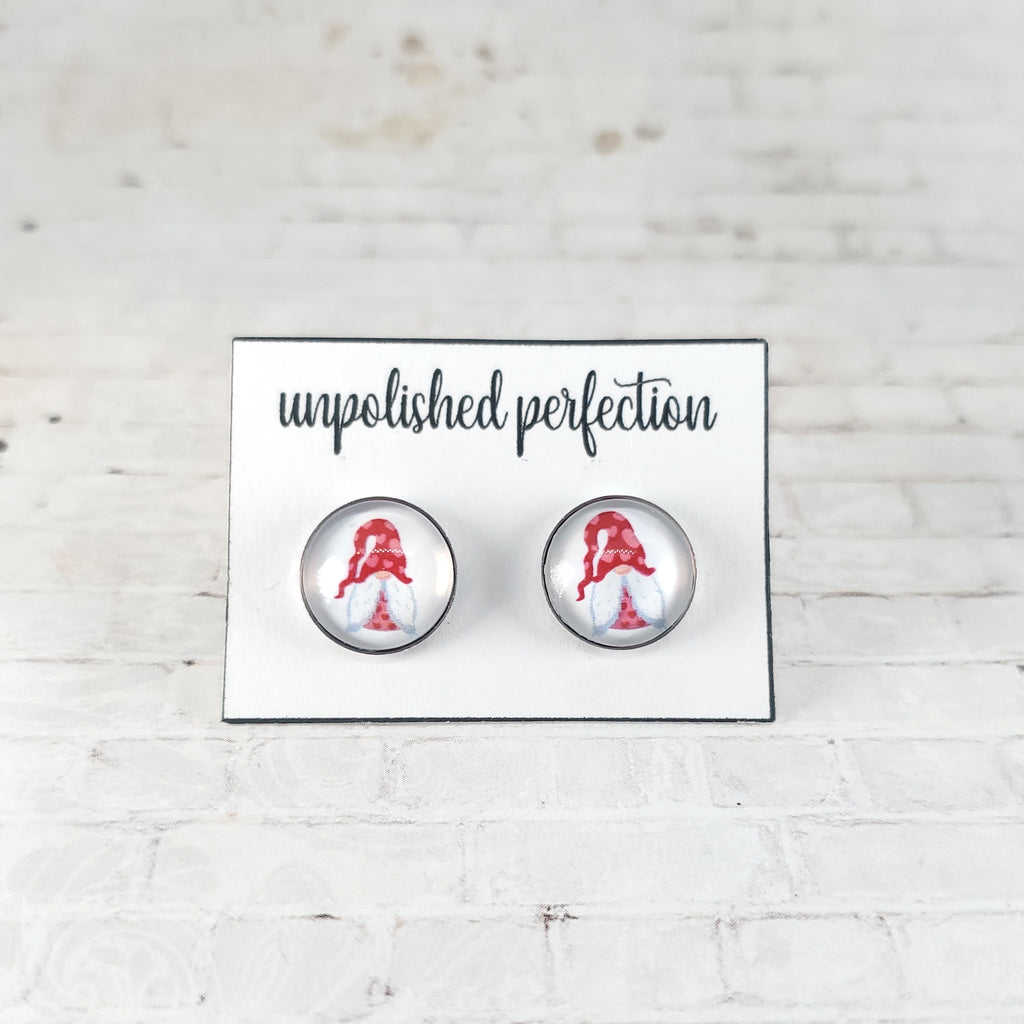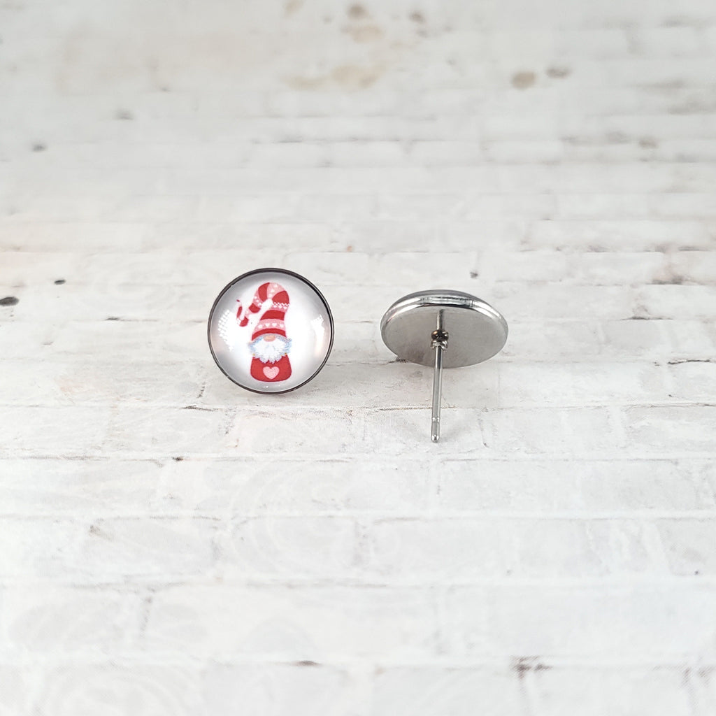 Valentine Gnome Earrings | 12mm Studs | Valentine's Day Stud Earrings